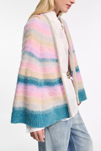 The softest stripes we could make: The cape-like cardigan is knit in plush new cashmere yarn and has an open front. The hybrid style features a textured surface feel and stripes which fade seamlessly into each other. Material & Care - 100 % Cashmere - Extra soft cashmere cape-style cardigan with bright stripes - Special knitting technique creates a color fading stripe pattern - Unique, textured relief effect with artisanal knit stitching - Chunky rib knit trim - WE CARE - This item is finished according to STANDARD 100 by OEKO-TEX, 22.0.98928 Hohenstein HTTI - Hand wash cold / Machine wash cold - Wash with similar colors Size & Fit - Our model is 178cm tall and wears a size 2 - Wide raglan sleeves with trompe-l’oeil effect - Sleeves are fixed on the inside with a ribbon - Falls to the hip