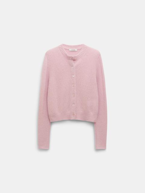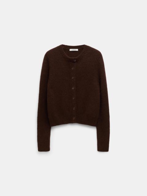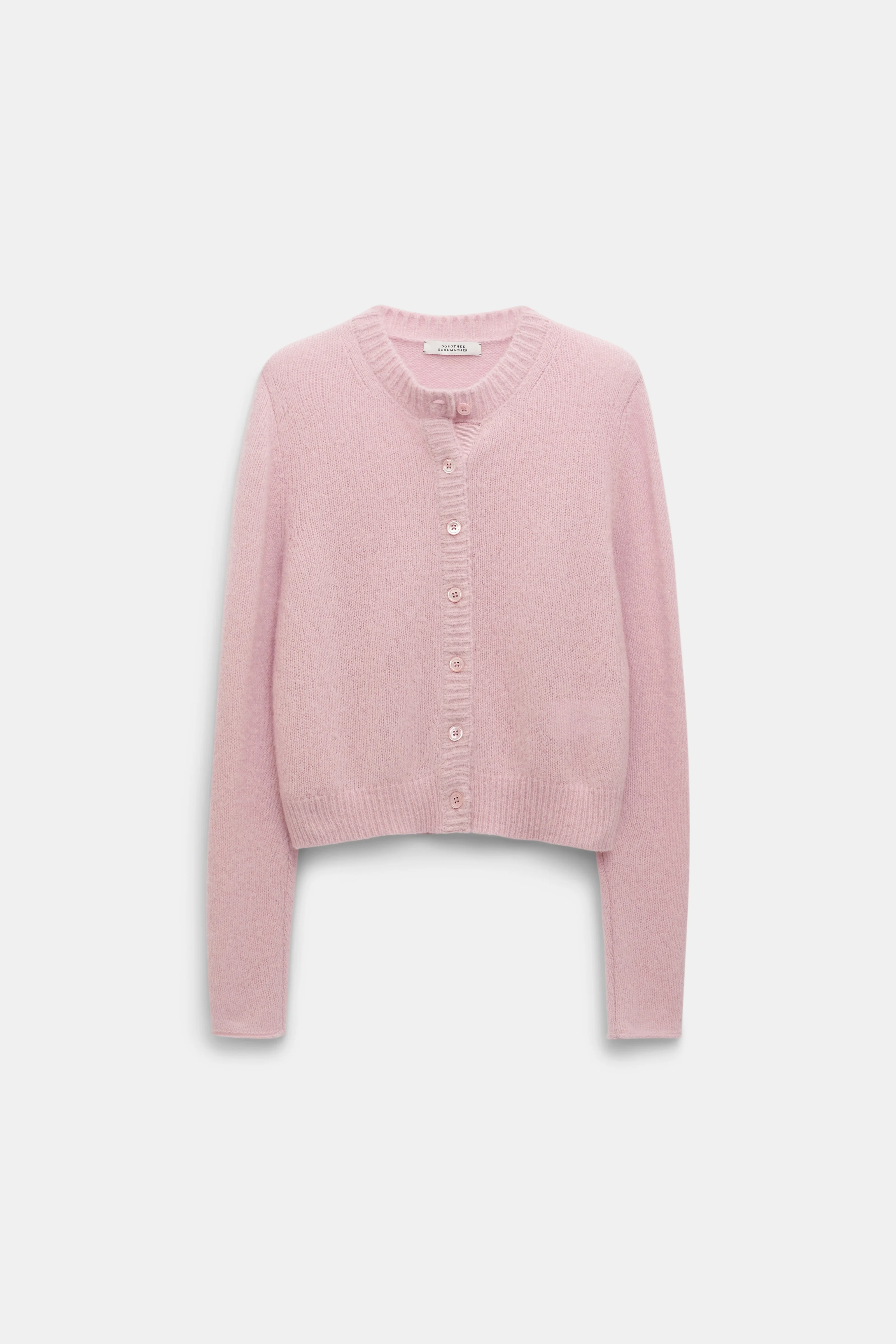 Knit from luxuriously soft new cashmere, the round neck cardigan is cropped and loosely fitted. The cardigan can be worn as a twinset with the matching shell. Material & Care - 100 % Cashmere - New cashmere knit cardigan - Round neckline - Rolled cuffs - Button placket with grosgrain ribbon - WE CARE - This item is finished according to OEKO-TEX® STANDARD 100, 22.0.98928 Hohenstein - Hand wash cold / Machine wash old - Wash with similar colors Size & Fit - Our model is 180cm tall and wears a size 2 - Cropped, loosely fitted - Fitted shoulders