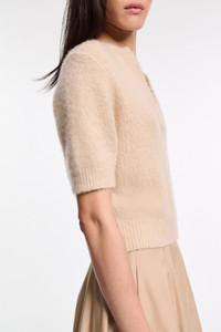 The softest we could make: The crop sleeve sweater is knit in plush new cashmere yarn and has an open neckline. Material & Care - 100 % Cashmere - Extra soft cashmere sweater with half sleeves - Open round neckline with smooth knit trim - Chunky rib knit cuffs and hemline - WE CARE - This item is finished according to STANDARD 100 by OEKO-TEX, 22.0.98928 Hohenstein HTTI - Hand wash cold / Machine wash cold - Wash with similar colors Size & Fit - Our model is 180cm tall and wears a size 2 - Loosely fitted