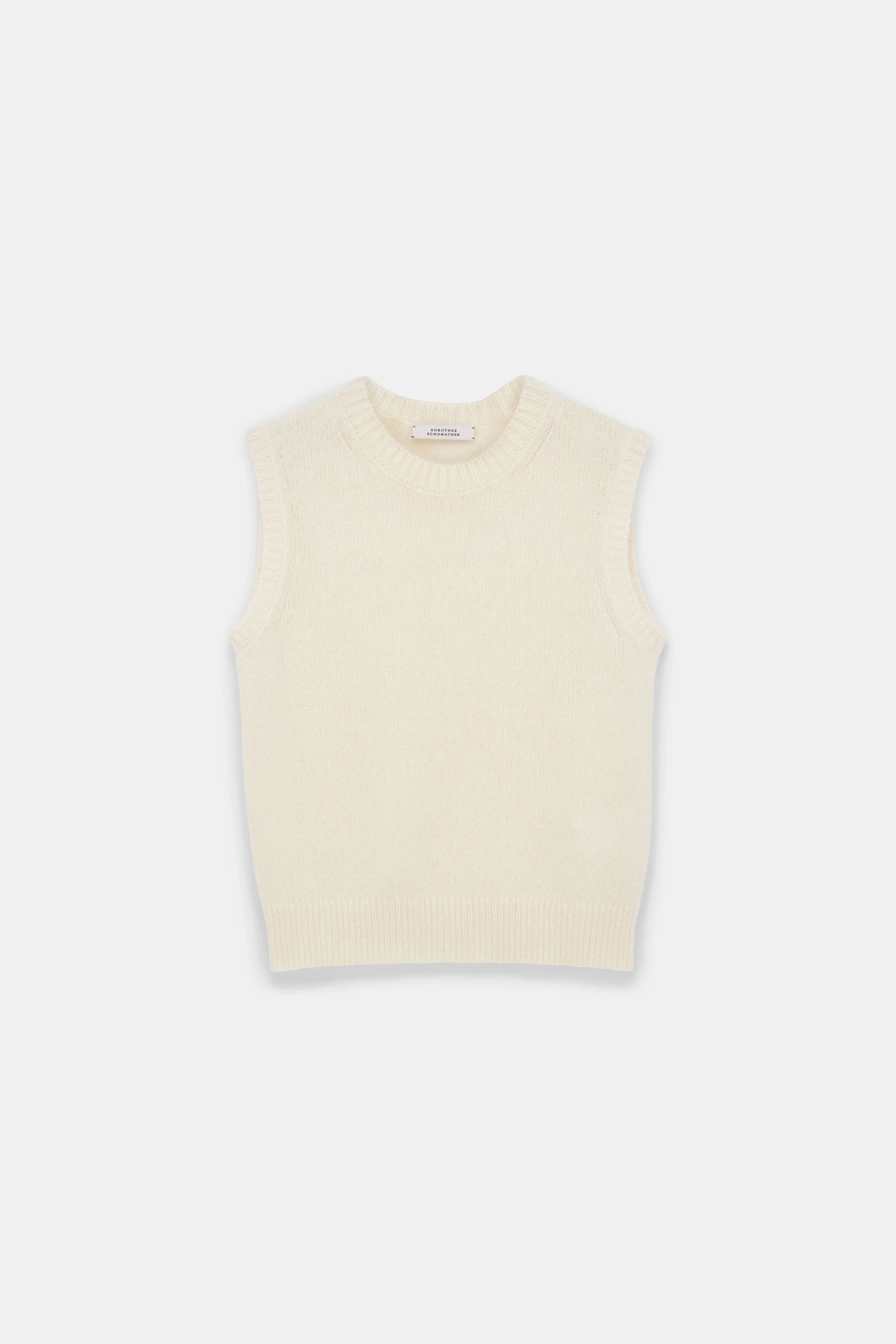 Knit from luxuriously soft new cashmere, the round neck shell is cropped and loosely fitted. The shell can be worn as a twinset with the matching cardigan. Material & Care - 100 % Cashmere - New cashmere knit shell - Round neckline - WE CARE - This item is finished according to OEKO-TEX® STANDARD 100, 22.0.98928 Hohenstein - Hand wash cold / Machine wash old - Wash with similar colors Size & Fit - Our model is 179cm tall and wears a size 2 - Cropped, loosely fitted - Fitted shoulders