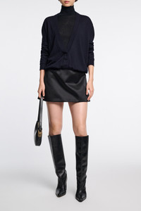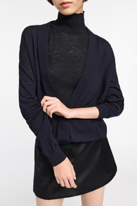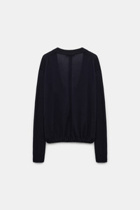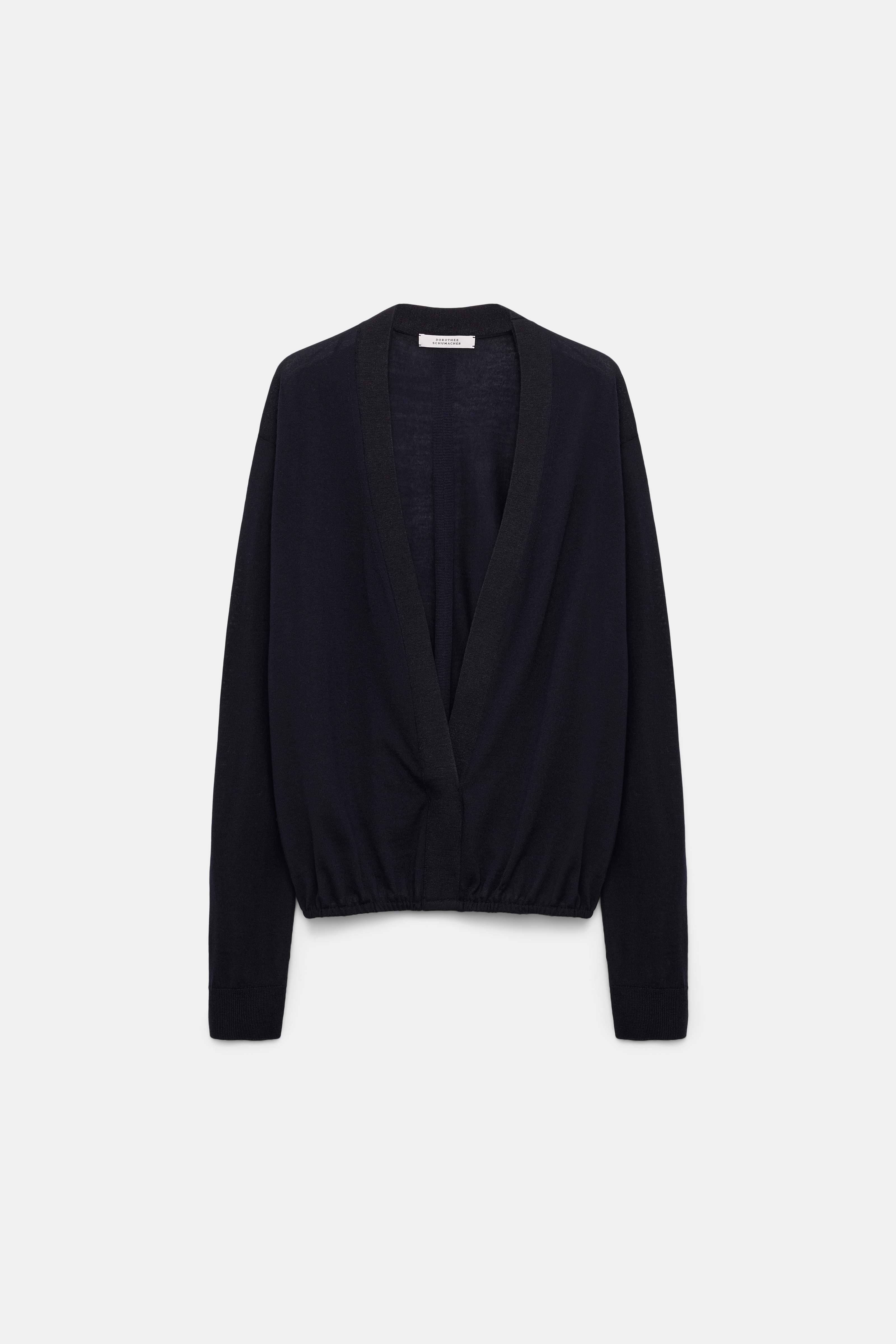 The virgin Merino wool pullover has a deep wrap neckline, which creates a soft blouson effect at the hem. Material & Care - 100 % Virgin wool (Merino) - V-neck pullover - Deep wrap neckline - Gathered hem creates a blouson effect - WE CARE - The yarn is mulesing-free Size & Fit - Our model is 179 cm tall and wears a size S - Generous volume - Dropped shoulders - Relaxed sleeves, fitted cuffs