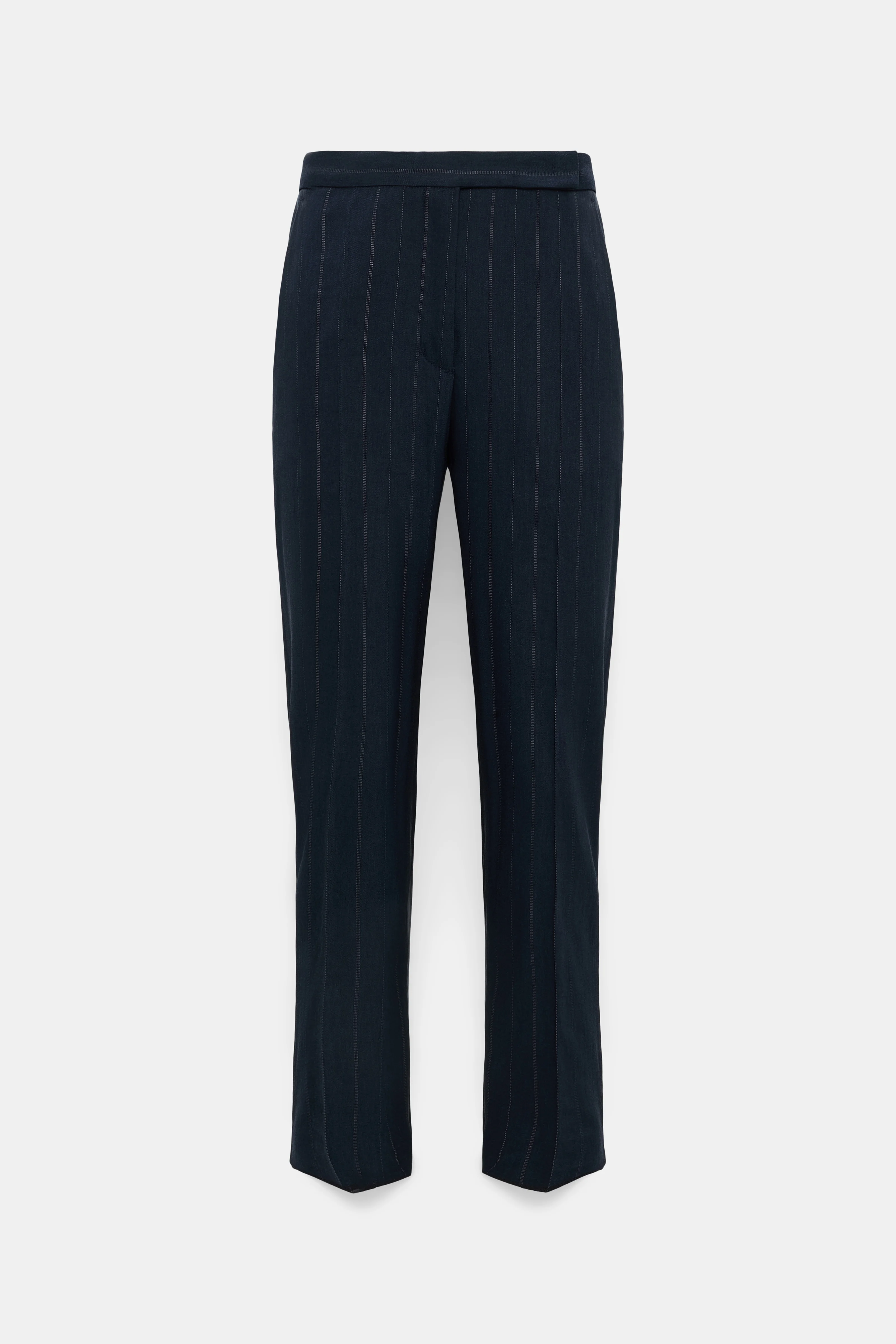 The new suiting is (pin)striped: Crafted in a linen blend, the pinstripe pants feature a slim leg and cropped length. The pants can be worn as part of a suit with the matching shell and blazer. Material & Care - 52 % Linen, 45 % Viscose, 2 % Elastane, 1 % Polyester - Slim cropped pinstripe pants - Waistband with extended tab closure - Diagonal side pockets - Back welt pockets - Comes with an unfinished hemline so you can custom tailor to your desired length - Dry clean only - No optical brighteners - Do not expose to extreme light - Shield from sharp items Size & Fit - Our model is 178cm tall and wears a size 2 - Cropped leg