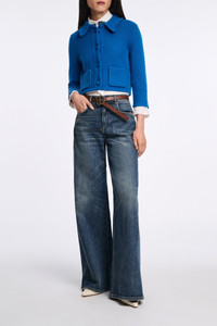 The cropped jacket is made from a soft Merino-cashmere mix and has an oversized collar. The 1/2 sleeve style has pockets and stitched trim, which creates a quilted-effect at the edges. Material & Care - 66 % Virgin wool (Merino), 28 % Cashmere, 5 % Polyamide, 1 % Elastane - Cropped Merino-cashmere knit jacket with pockets - Oversized collar - Covered button closures - Cropped sleeves - WE CARE - The yarn is mulesing-free - WE CARE - This item is finished according to STANDARD 100 by OEKO-TEX, 22.0.98928 Hohenstein HTTI - Hand wash cold / Machine wash cold - Wash with similar colors Size & Fit - Our model is 178cm tall and wears a size 2 - Fitted - Cropped - Fitted shoulders