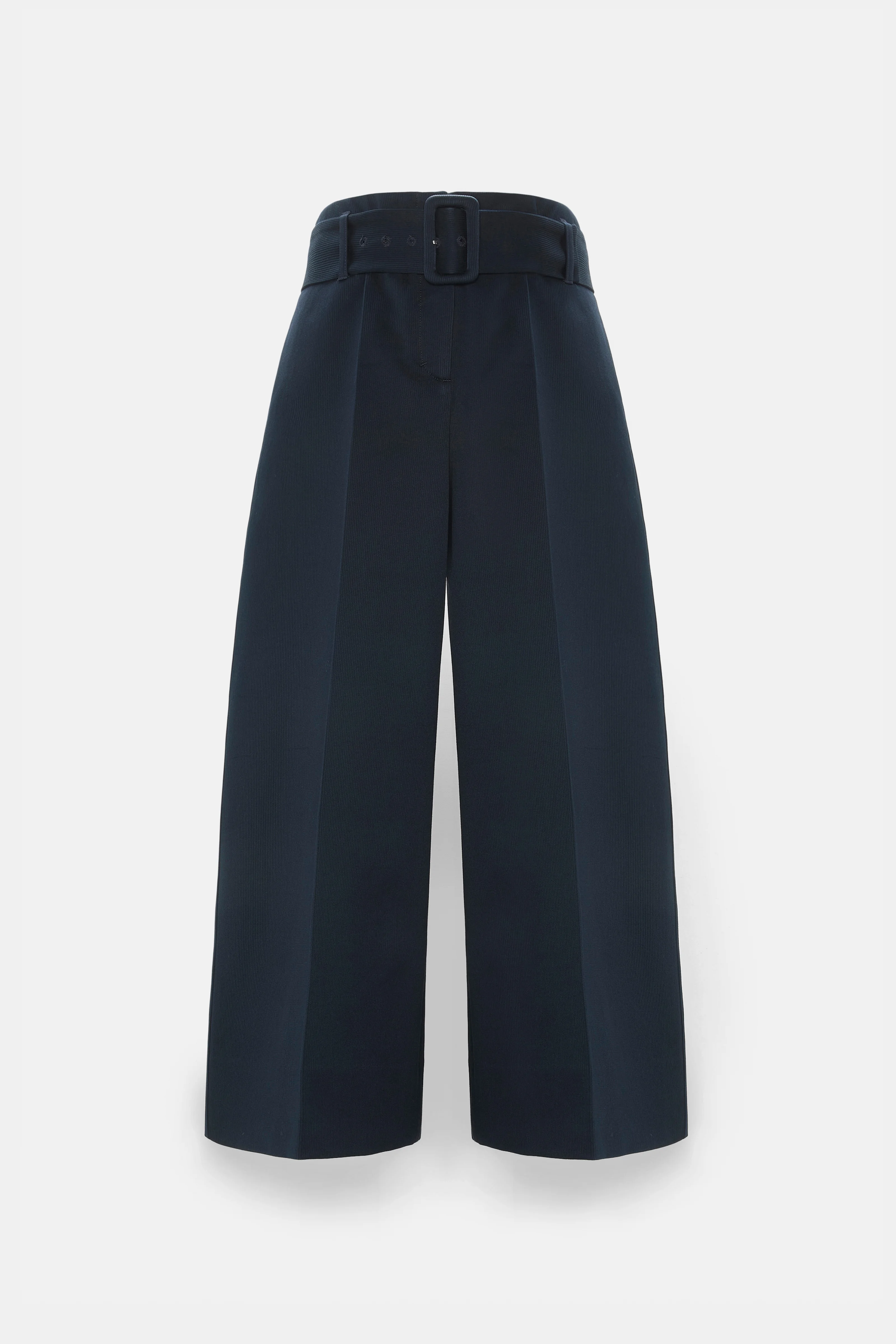 The cotton culottes are styled with a high waist and have a wide leg and cropped length. The culottes feature a matching belt with fabric covered buckle. The matching blazer completes the suit look. Material & Care - 100 % Cotton - High-waisted cotton culottes - Belt with covered buckle - Belt loops - In-seam side pockets - Back patch pockets - Dry clean only - No optical brighteners - Do not expose to extreme light - Vor spitzen Gegenstanden schutzen Size & Fit - Our model is 178cm tall and wears a size 2. - Wide, cropped leg