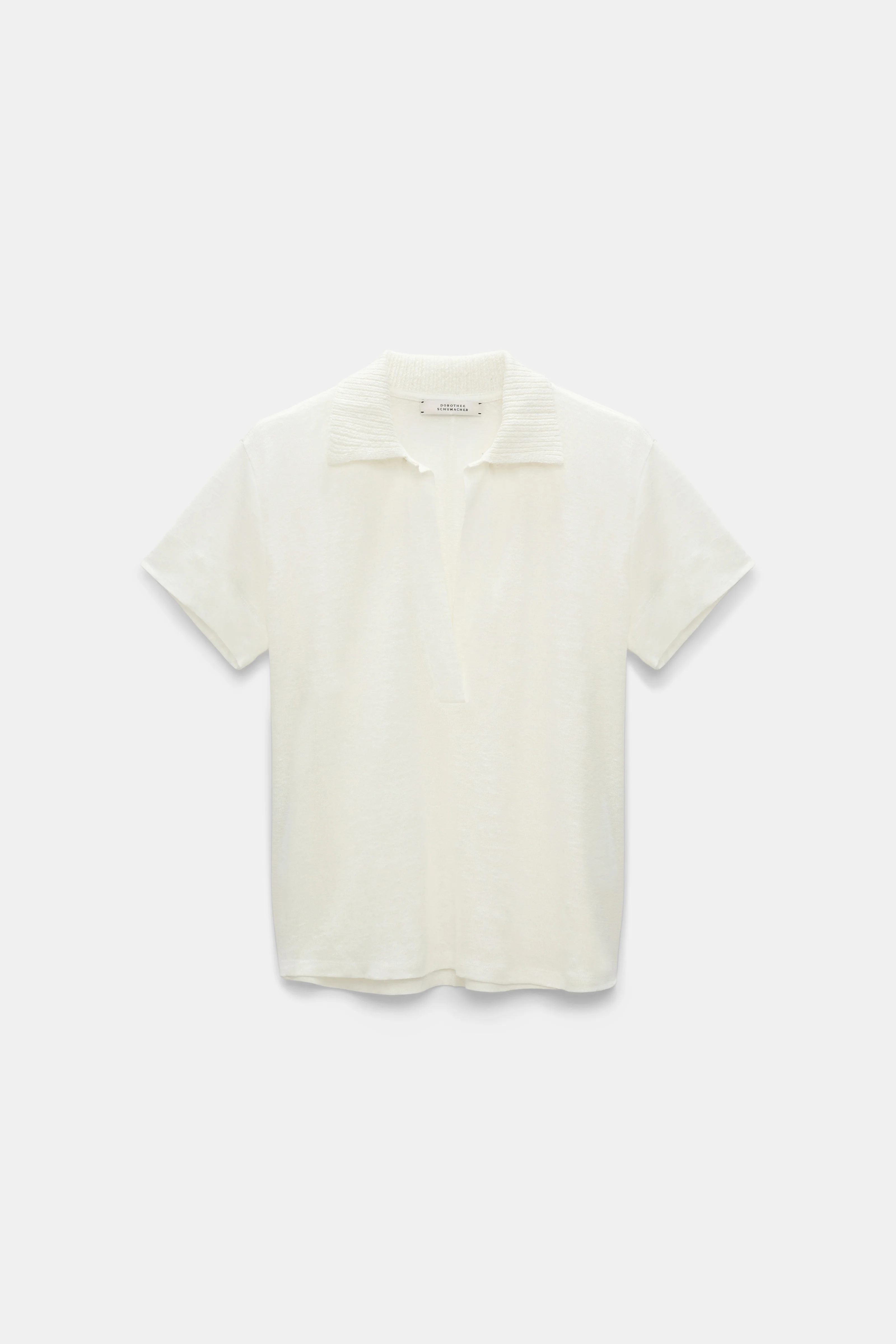 The polo shirt is crafted in hemp and has a heavier ribbed knit collar. The top has an open neckline and straight silhouette. Material & Care - 100 % Hemp - Hemp polo shirt with ribbed knit collar - Open neckline - Double needle stitching on the sleeves and hem - Baseball stitch at the back and on the side seams - WE CARE - This item is finished according to STANDARD 100 by OEKO-TEX, 22.0.98928 Hohenstein HTTI - Mild wash / Delicates - Wash with similar colors - No dry cleaning Size & Fit - Our model is 180cm tall and wears a size 2 - Straight fit - Fitted shoulders