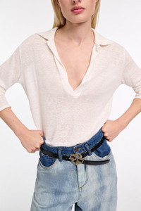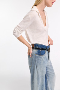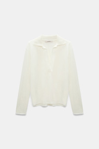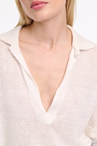 The longsleeve polo shirt is crafted in hemp and has a heavier ribbed knit collar. The top has an open neckline and straight silhouette. Material & Care - 100 % Hemp - Hemp longsleeve polo shirt with ribbed knit collar - Open neckline - Double needle stitching on the sleeves and hem - Baseball stitch at the back and on the side seams - WE CARE - This item is finished according to STANDARD 100 by OEKO-TEX, 22.0.98928 Hohenstein HTTI - Mild wash / Delicates - Wash with similar colors - No dry cleaning Size & Fit - Our model is 178cm tall and wears a size 2 - Straight fit - Fitted shoulders