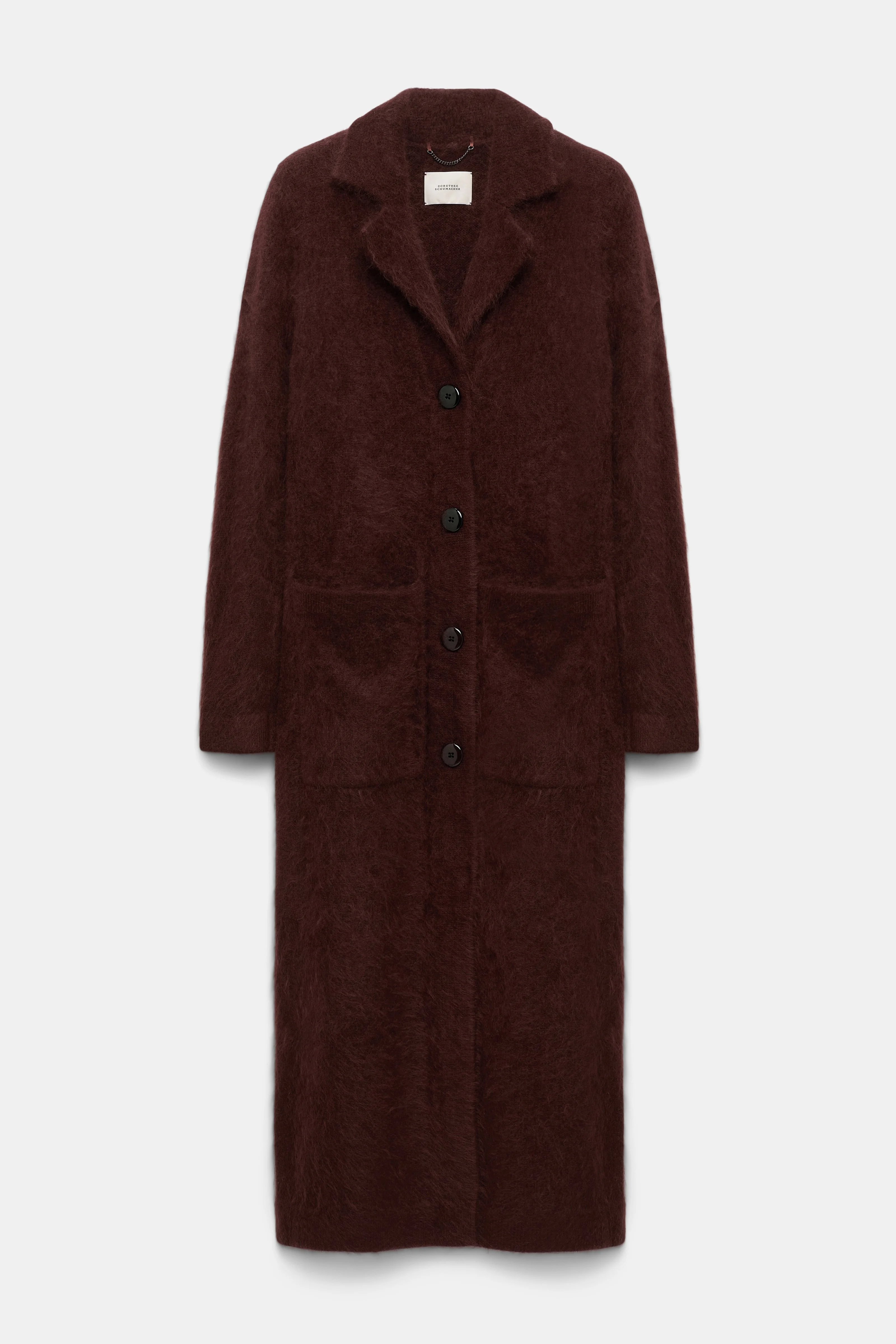 A luxurious choice for layering, the virgin Merino-cashmere knit coat is finished with the softest, fluffy wash finish. Shoulder pads give the relaxed silhouette a touch of structure. Material & Care - 67 % Virgin wool (Merino), 28 % Cashmere, 4 % Polyamide, 1 % Elastane - Virgin Merino-cashmere coat - Notched lapel collar - "Fluffy knit" wash is pleated with elastane - Patch pockets - Shoulder pads - WE CARE - The wool content is mulesing-free - Hand wash cold / Machine wash old - Wash with similar colors Size & Fit - Our model is 178cm tall and wears a size 2 - Loosely fitted, straight cut - Fitted shoulders - Relaxed sleeves