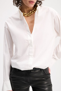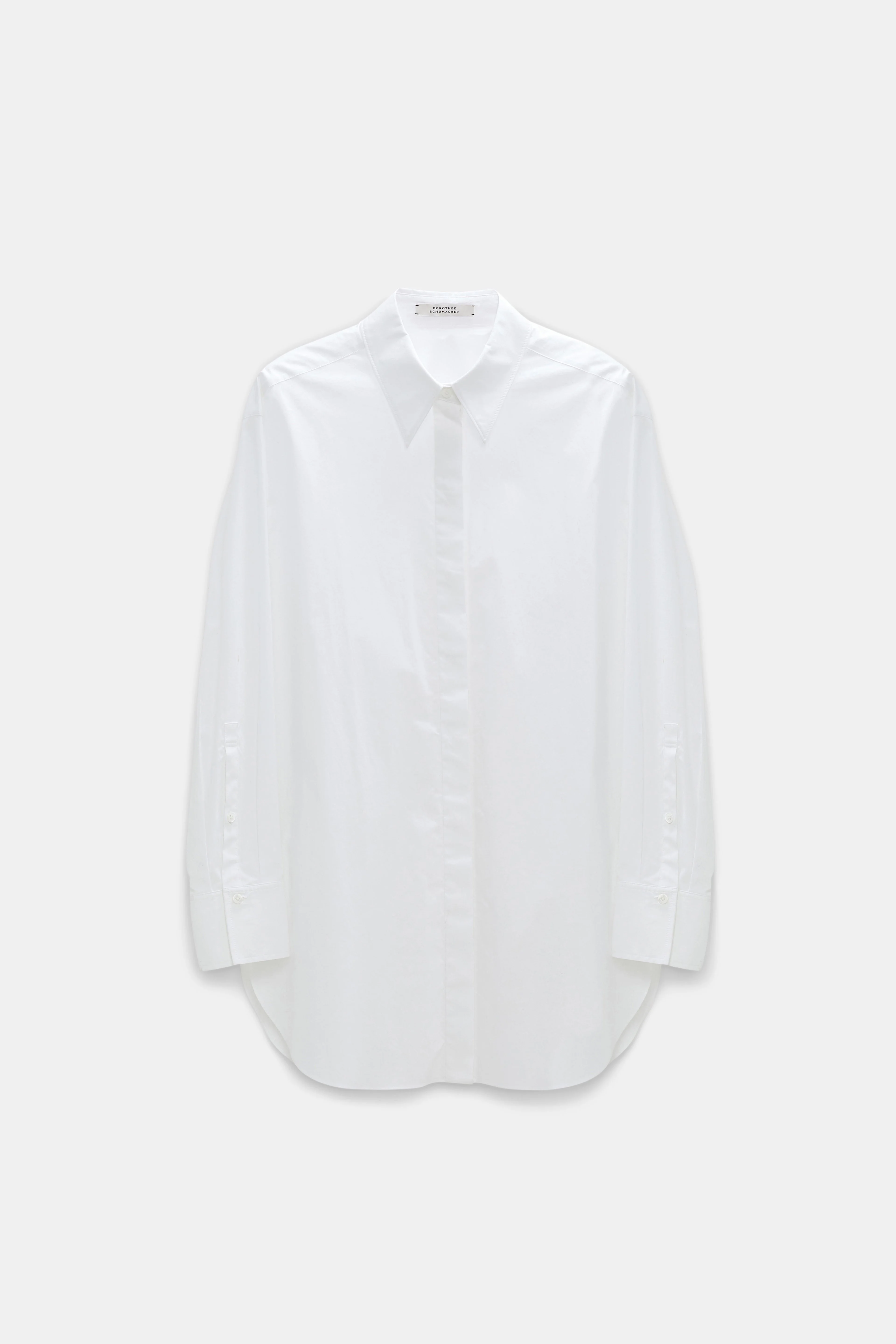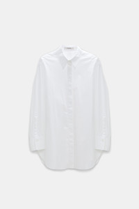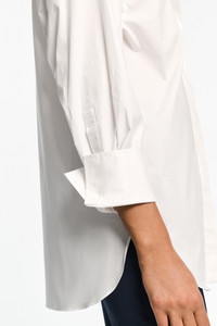 With a longer length and causal cut, the blouse is made of stretch cotton poplin and features classic styling like a concealed button placket and rounded hem. Slits at the cuffs maximize styling versatility with buttons. Material & Care - 97 % Cotton, 3 % Elastane - Long, relaxed cut shirt in stretch cotton poplin - Concealed button placket - Buttoned cuffs - Rounded shirt hem - Kellerfalte hinten Size & Fit - Our model is 178cm tall and wears a size S - Relaxed fit - Dropped shoulders - Longer length