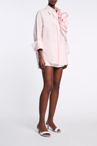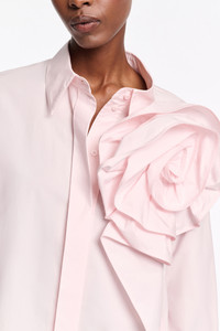 This bouquet is for you: The shirt is made from cotton poplin and has an XL flower brooch, which can be removed. The shirt has dropped shoulders and extended button cuffs, which can be styled in multiple ways. Material & Care - 96 % Cotton, 4 % Elastane - Cotton poplin shirt - Classic collar - Removable XL flower brooch - Hidden button placket - High side slits - WE CARE - This item is finished according to STANDARD 100 by OEKO-TEX, 22.0.98928 Hohenstein HTTI - Hand wash program / Machine wash - Wash with similar colors - Contains non-textile parts of animal origin - Remove all detachable parts before cleaning Size & Fit - Our model is 179 cm tall and wears a size S - Oversized - Dropped shoulders
