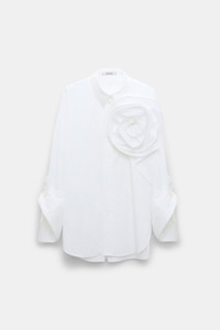This bouquet is for you: The shirt is made from cotton poplin and has an XL flower brooch, which can be removed. The shirt has dropped shoulders and extended button cuffs, which can be styled in multiple ways. Material & Care - 96 % Cotton, 4 % Elastane - Cotton poplin shirt - Classic collar - Removable XL flower brooch - Hidden button placket - High side slits - WE CARE - This item is finished according to STANDARD 100 by OEKO-TEX, 22.0.98928 Hohenstein HTTI - Hand wash program / Machine wash - Wash with similar colors - Contains non-textile parts of animal origin - Remove all detachable parts before cleaning Size & Fit - Our model is 178 cm tall and wears a size S - Oversized - Dropped shoulders