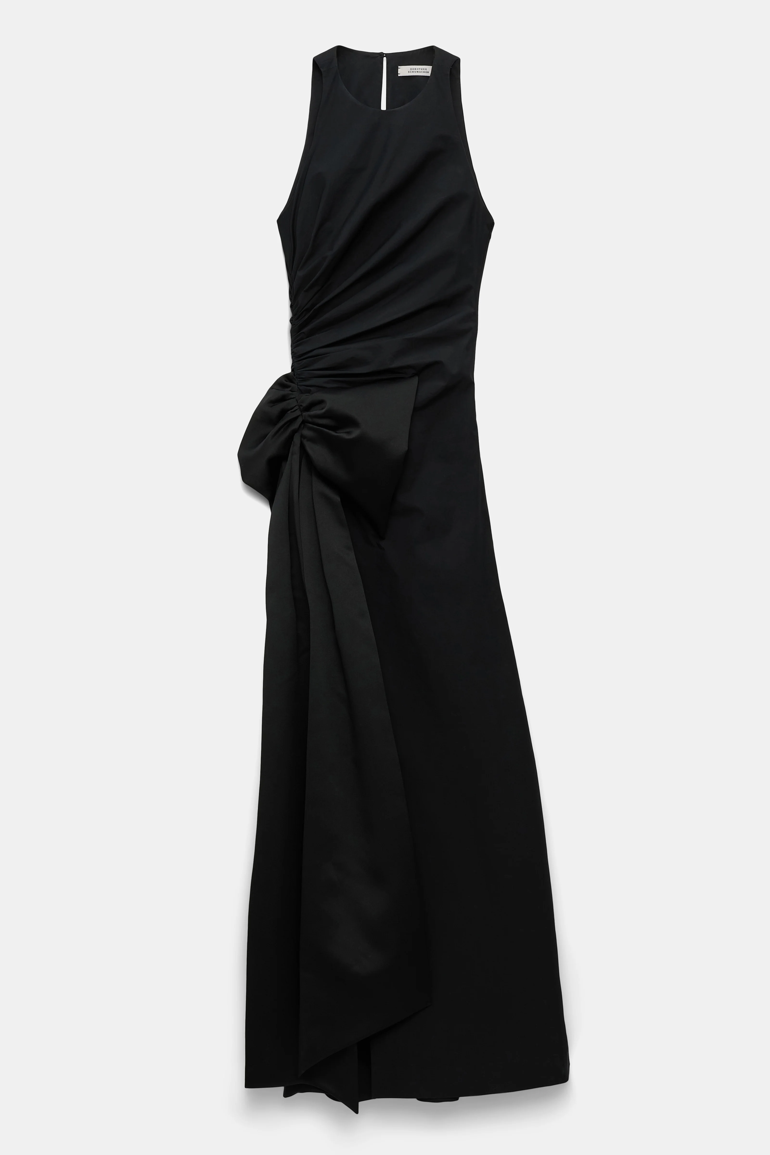 Memorable comes to mind. The floor-grazing dress is cut in cotton-poplin and features soft draping and an XL satin bow on the hip. The dress has a round neckline and deep side slit. Material & Care - 96 % Cotton, 4 % Elastane - Draped dress in cotton-poplin with maxi bow - Round neckline - Cut-in shoulders - Deep slide slit - XL silk duchesse satin bow Size & Fit - Form-fitting