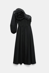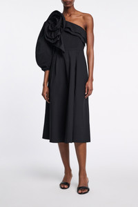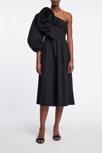 This bouquet is for you: The midi dress is made from cotton poplin and has a single voluminous sleeve. The dress has ruffle trim around the top and an XL flower brooch, which can be removed with a pin closure. Material & Care - 96 % Cotton, 4 % Elastane - Asymmetric midi dress in cotton poplin - Voluminous sleeve - Removable XL flower brooch - Hand wash program / Machine wash - Wash with similar colors - Remove all detachable parts before cleaning Size & Fit - Our model is 179 cm tall and wears a size S - Slim tailored fit - Voluminous skirt