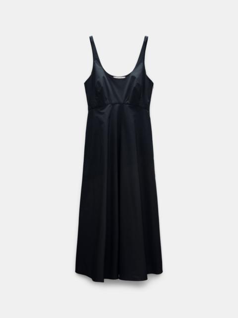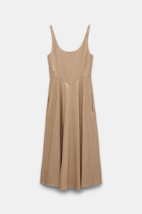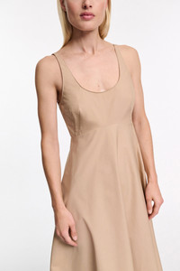 The cotton poplin midi-dress features a ballerina neckline and emprie waist, which comes to a V at the back. The dress is fitted at the top and falls into a bias cut swing skirt. Pair with the cropped blouse for a layered look. Material & Care - 96 % Cotton, 4 % Elastane - Cotton poplin midi-dress with ballerina neckline - Emprie waist tapers to a V at the back - Bias cut skirt - In-seam side pockets - WE CARE - This item is finished according to STANDARD 100 by OEKO-TEX, 22.0.98928 Hohenstein HTTI - Hand wash program / Machine wash - Wash with similar colors Size & Fit - Our model is 178cm tall and wears a size 2 - Form-fitting bodice - Swing skirt