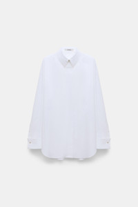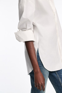 The shirt has a casual, oversized fit and is finished with D-Rose details. The cotton poplin essential has French cuffs, a concealed button placket, and a button-down collar. Material & Care - 96 % Cotton, 4 % Elastane - Cotton-poplin shirt - French cuffs with D-Rose cufflinks - Hidden button placket - Button-down collar Size & Fit - Dropped shoulders - Oversized - Relaxed fit