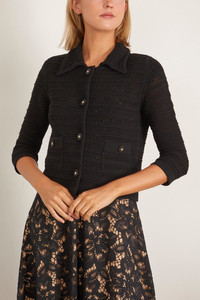 Precise Pointelle Jacket in Pure Black