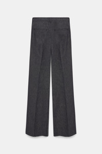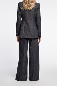The tailored wide leg pants are made of cotton denim with a hint of stretch. The pants have side and back welt pockets and open seams. The pants can be worn as a suit with the matching blazer. Material & Care - 98 % Cotton, 2 % Elastane - Tailored denim wide leg pants - Side slit pockets - Extended tab closure on the waistband - Back welt pockets - Belt loops - Open seams Size & Fit - Our model is 179 cm tall and wears a size S - Wide leg