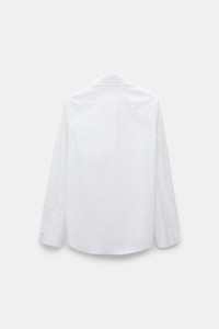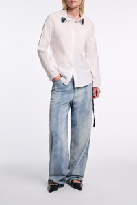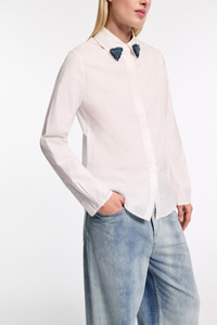 The cotton poplin shirt has a slim fit and concealed button placket. The classic style has a removable collar featuring bead-embellished tips. Material & Care - 97 % Cotton, 3 % Elastane - Stretch cotton poplin shirt with embroidered collar - Removable collar - Hidden placket - Cuffs with open seam finishing - Hand wash program / Machine wash - Wash with similar colors - Contains non-textile parts of animal origin Size & Fit - Our model is 178cm tall and wears a size 2 - Slim fit - Fitted shoulders