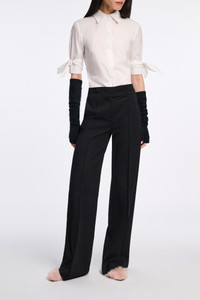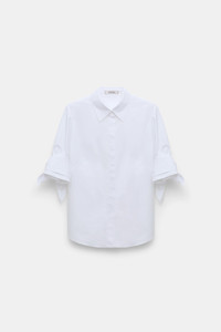 The blouse is cut in stretch cotton poplin and has removable tie detailing on the cuffs. The blouse has half sleeves. Material & Care - 97 % Cotton, 3 % Elastane - Stretch poplin half-sleeve blouse - Classic collar - Removable tie detail on the cuffs - WE CARE - This item is finished according to OEKO-TEX® STANDARD 100, 22.0.98928 Hohenstein Size & Fit - Fitted shoulders - Loosely fitted
