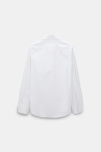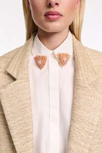 The cotton poplin shirt has a slim fit and concealed button placket. The classic style has a removable collar featuring bead-embellished tips. Material & Care - 97 % Cotton, 3 % Elastane - Stretch cotton poplin shirt with embroidered collar - Removable collar - Hidden placket - Cuffs with open seam finishing - Hand wash program / Machine wash - Wash with similar colors - Contains non-textile parts of animal origin Size & Fit - Our model is 178cm tall and wears a size 2 - Slim fit - Fitted shoulders