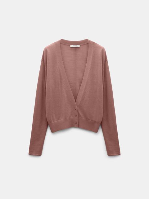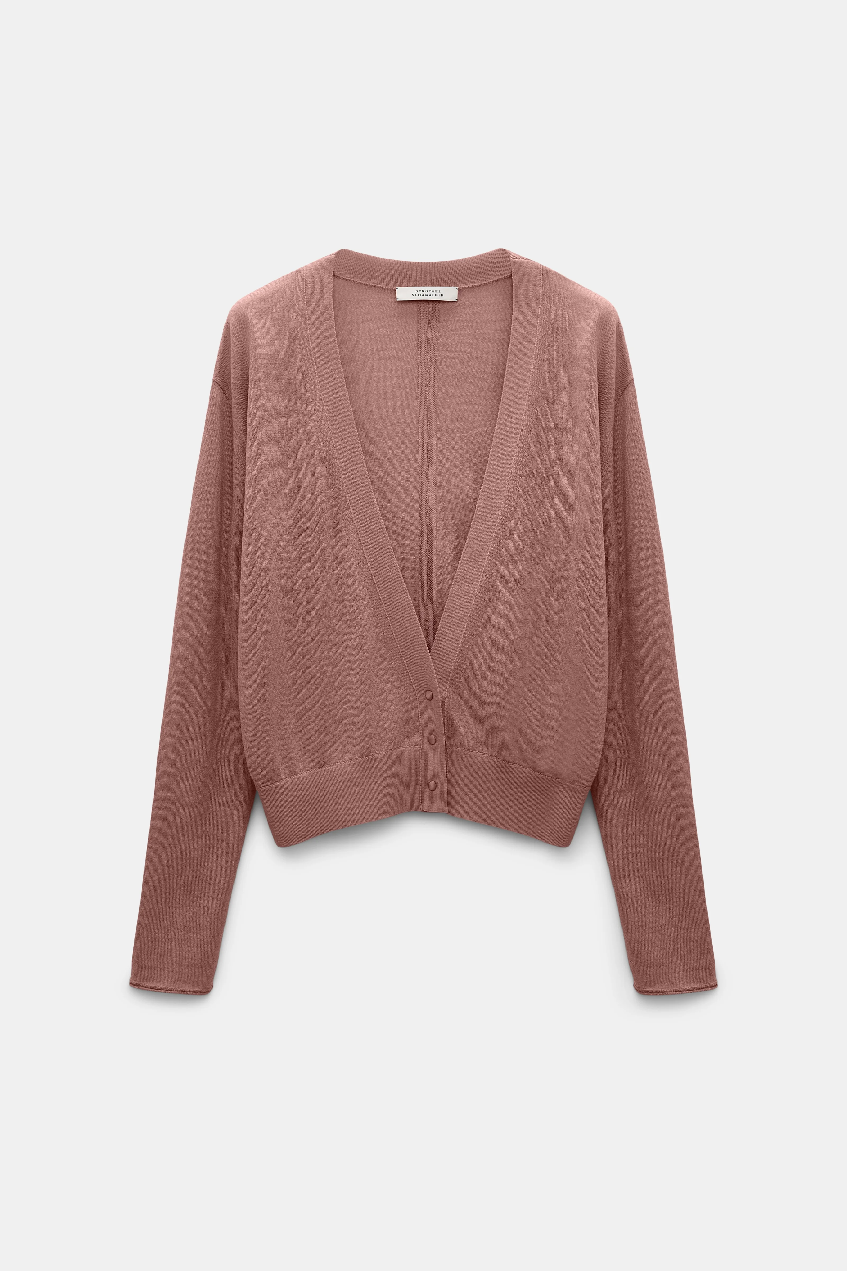 The virgin-wool-cotton cardigan has a deep V-neckline and dropped shoulders, creating a relaxed drape that tapers at the hemline. Ideal for layering, the cardigan becomes a twinset with the matching knit top. Material & Care - 52 % Virgin Wool, 48 % Cotton - Virgin wool-cotton cardigan with deep V-neckline - Satin covered buttons - Rolled trim on the cuffs - WE CARE - The yarn is mulesing-free - WE CARE - This item is finished according to STANDARD 100 by OEKO-TEX, 22.0.98928 Hohenstein HTTI - Hand wash cold / Machine wash cold - Wash with similar colors Size & Fit - Our model is 178cm tall and wears a size 2 - Relaxed top, fitted at the hips - Dropped shoulders