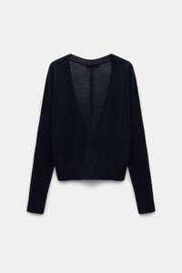 The virgin-wool-cotton cardigan has a deep V-neckline and dropped shoulders, creating a relaxed drape that tapers at the hemline. Ideal for layering, the cardigan becomes a twinset with the matching knit top. Material & Care - 52 % Virgin Wool, 48 % Cotton - Virgin wool-cotton cardigan with deep V-neckline - Satin covered buttons - Rolled trim on the cuffs - WE CARE - The yarn is mulesing-free - WE CARE - This item is finished according to STANDARD 100 by OEKO-TEX, 22.0.98928 Hohenstein HTTI - Hand wash cold / Machine wash cold - Wash with similar colors Size & Fit - Our model is 180cm tall and wears a size 2 - Relaxed top, fitted at the hips - Dropped shoulders
