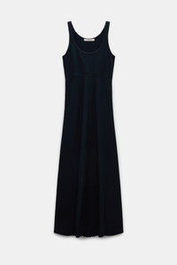 The stretch cotton maxi dress is ribbed and has a fit and flare silhouette. The scoop neck style has thin straps and a bias cut skirt, which is slightly shorter in the front. Material & Care - 97 % Cotton, 3 % Elastane - Fit and flare maxi dress - Double layer ribbed stretch cotton - Scoop neckline - Topstitched trim at neckline and sleeve opening - Bias cut swing skirt is slightly shorter at the front - WE CARE - This item is finished according to STANDARD 100 by OEKO-TEX, 22.0.98928 Hohenstein HTTI - Mild wash / Delicates - Wash with similar colors Size & Fit - Our model is 180cm tall and wears a size 2 - Fitted top - Flared, swing skirt - Skirt is shorter at the center front