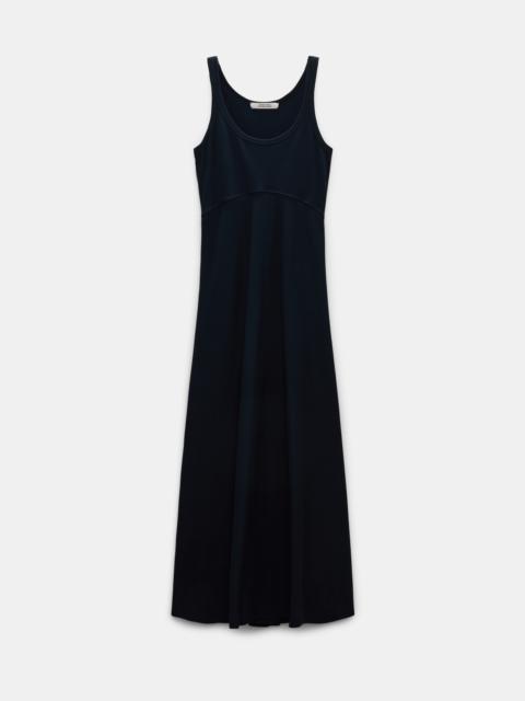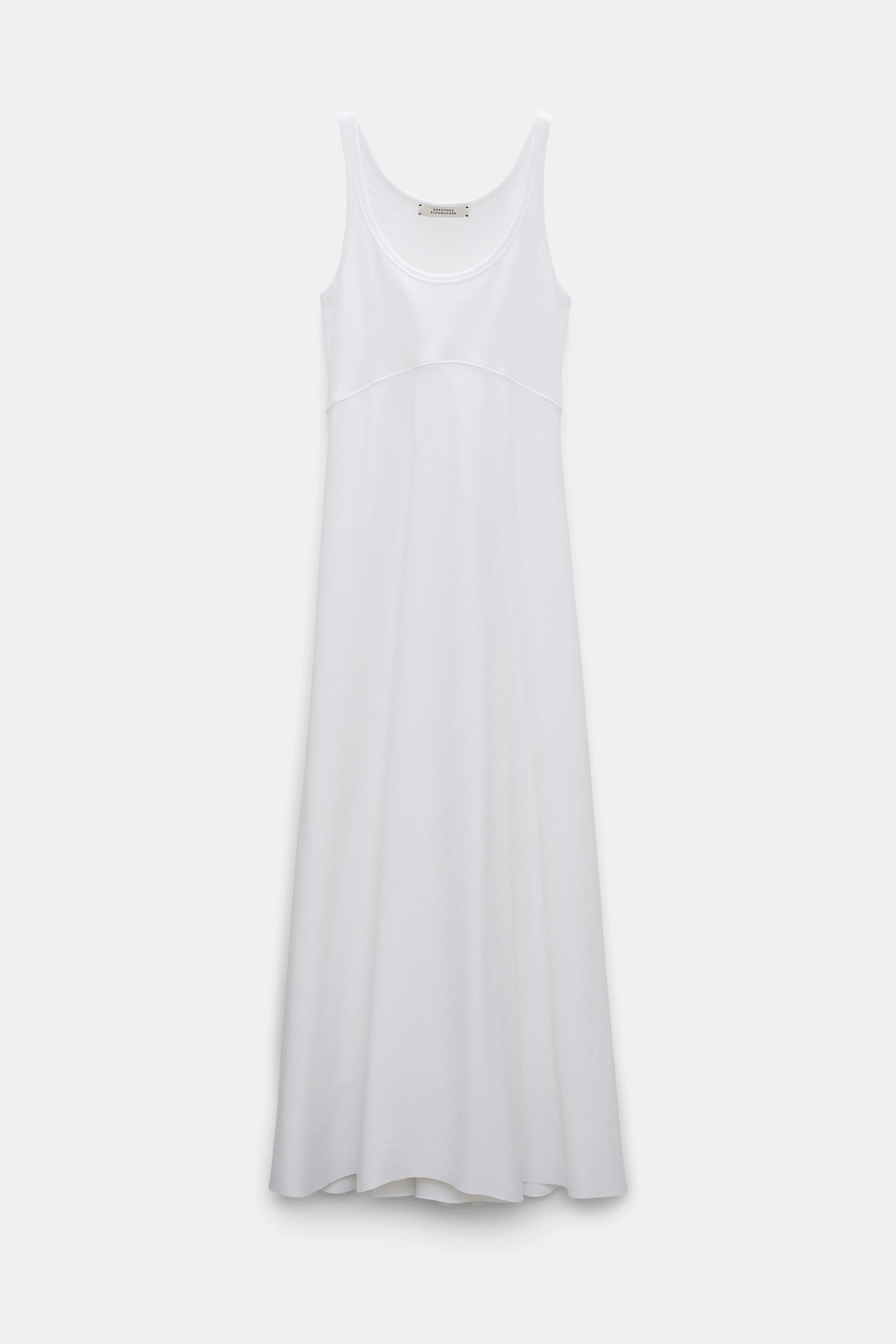 The stretch cotton maxi dress is ribbed and has a fit and flare silhouette. The scoop neck style has thin straps and a bias cut skirt, which is slightly shorter in the front. Material & Care - 97 % Cotton, 3 % Elastane - Fit and flare maxi dress - Double layer ribbed stretch cotton - Scoop neckline - Topstitched trim at neckline and sleeve opening - Bias cut swing skirt is slightly shorter at the front - WE CARE - This item is finished according to STANDARD 100 by OEKO-TEX, 22.0.98928 Hohenstein HTTI - Mild wash / Delicates - Wash with similar colors Size & Fit - Our model is 178cm tall and wears a size 2 - Fitted top - Flared, swing skirt - Skirt is shorter at the center front