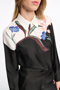 Wear a work of art: The silk twill blouse features our in-house designed key print, and has classic shirt styling. Material & Care - 100 % Silk - Silk twill blouse with placement print - Classic collar - Concealed placket - WE CARE - This item is finished according to OEKO-TEX® STANDARD 100, 22.0.98928 Hohenstein Size & Fit - Relaxed fit