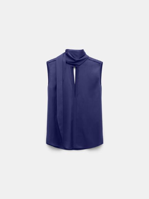 The sleeveless blouse is styled in silk satin and has a scarf collar. The blouse can be worn as a set with the matching bias-cut skirt. Material & Care - 100 % Silk - Sleeveless blouse in silk satin - V-neckline with scarf detail - Matte and glossy material play - Hand wash cold / Machine wash - Wash with similar colors - Contains non-textile parts of animal origin Size & Fit - V-neckline with scarf detail - Relaxed fit