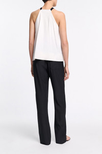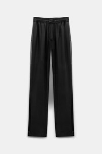 The silk-satin wide leg pants have a relaxed fit and drawstring waist. Material & Care - 100 % Silk - Silk satin relaxed pants - Elastic drawstring waist - Button fly - Pockets with gussets - Back patch pocket Size & Fit - Our model is 178 cm tall and wears a size S - Wide leg - Relaxed fit - Slight dropped crotch