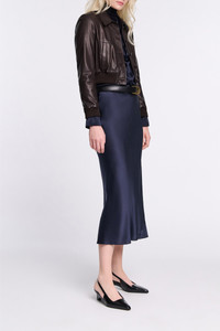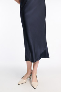 The stretch silk-satin midi-skirt is cut on the bias and has an elastic waistband. Material & Care - 95 % Silk, 5 % Elastane - Stretch satin midi-skirt - Bias cut - Elastic waistband - Hand wash programm cold / Machinewash - Wash with similar colours Size & Fit - Loosely fitted