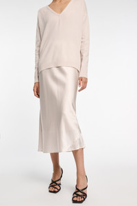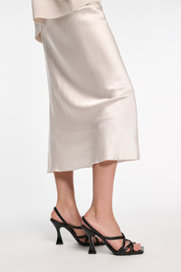 Cut on the bias for the loveliest of drapes, the stretchy satin skirt is feminine and so easy to wear. Try contrasting the silky piece with sneakers or leather boots for a more casual look. Material & Care - 95 % Silk, 5 % Elastane - Midi skirt in stretch silk-satin - Bias cut - Elastic waistband - Hand wash programm cold / Machinewash - Wash with similar colours Size & Fit - Our model is 177cm tall and wears a size S - Loosely fitted