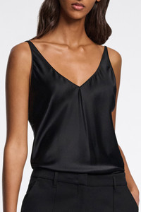 The perfect first layer? We think it is. The camisole is cut on the bias and made of stretch satin. Pair with blazers or more casually under denim. The possibilities are endless… Material & Care - 95 % Silk, 5 % Elastane - V-neck camisole in stretch satin - Bias cut - Adjustable straps - Darts at the bust - Hand wash programme / Machine wash - Wash with similar colours Size & Fit - Our model is 179cm tall and wears a size S - Loosely fitted