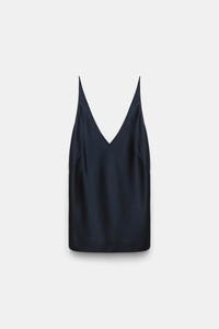 The perfect first layer? We think so. The camisole is cut on the bias and made of stretch silk-satin. The loosely fitted V-neck style has adjustable spaghetti straps. Material & Care - 95 % Silk, 5 % Elastane - Stretch satin V-neck camisole - Darts at the bust - Bias cut - Adjustable spaghetti straps - Hand wash programme / Machine wash - Wash with similar colours Size & Fit - Loosely fitted