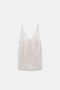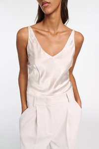 The perfect first layer? We think it is. The camisole is cut on the bias and made of stretch satin. Pair with blazers or more casually under denim. The possibilities are endless… Material & Care - 95 % Silk, 5 % Elastane - V-neck camisole in stretch satin - Bias cut - Adjustable straps - Darts at the bust - Hand wash programme / Machine wash - Wash with similar colours Size & Fit - Our model is 177cm tall and wears a size S - Loosely fitted