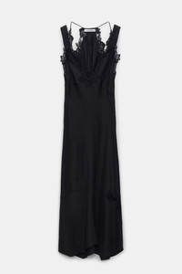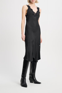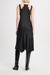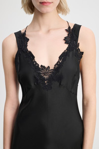 Recalling the sensual look of lingerie, the silk dress has tonal detailing in lace and a particularly stunning draped bias cut. The mid-length style has double-straps and a low-cut neckline. Material & Care - 100 % Silk - Silk twill lingerie-style dress with details in lace - Double-layer straps - Bias cut drape - WE CARE - This item is finished according to STANDARD 100 by OEKO-TEX, 22.0.98928 Hohenstein HTTI - Hand wash program / Machine wash - Wash with similar colors Size & Fit - Loosely fitted