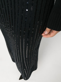 sequin-embellished high-waisted skirt black wool-cashmere blend knitted construction sequin embellishment high-waisted straight hem mid-length Imported Composition Wool 70%, Cashmere 30% SIZE & FIT Model measurements Height 5 ft 11 in(1.8 m) Bust/Chest 33.07 in(84 cm) Hips 37.4 in(95 cm) Waist 25.19 in(64 cm) FittingInformation Made with a midweight knit, this piece offers some stretch This piece fits true to size – take your usual size