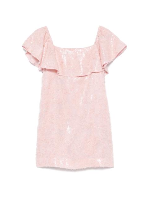 sequinned mini dress Highlights - Olive green - Concealed side zip fastening - Single shoulder strap - Ruffled detailing - Frayed detailing Imported Composition Outer: Polyester 100%, Cotton 77%, Linen/Flax 23% Lining: Polyester 100%