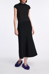 The midi-skirt is knit from a double-face stretch Merino mix and has a full swing silhouette. The skirt can be worn as a set with the matching knit jacket. Material & Care - 75 % Virgin wool (Merino), 23 % Polyamide, 2 % Elastane - Knit midi-skirt - Double-face stretch Merino blend - Special knit technique creates a flared hem - WE CARE - The wool content is mulesing-free - WE CARE - The wool yarn is finished according to globally recognized standards promoting animal welfare and land management. - Hand wash cold / Machine wash old - Wash with similar colors Size & Fit - Our model is 179cm tall and wears a size 2 - Loosely fitted at the hips
