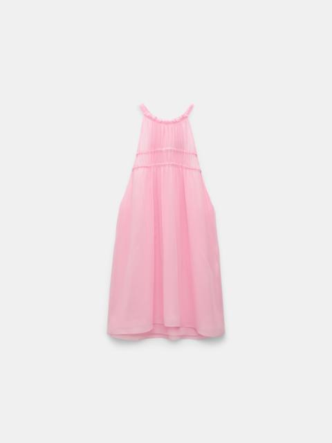 The silk-georgette tank top is loosely fitted and has soft shirring. The top has a high halter neckline with draped bands at the back. The hemline drapes slightly longer in the back. Material & Care - 100 % Silk - Silk-georgette tank top - Shirred detailing - Contrasting sheer and double layer transparency - High halter neckline with draped bands at the back - WE CARE - This item is finished according to STANDARD 100 by OEKO-TEX, 22.0.98928 Hohenstein HTTI - Hand wash program / Machine wash - Wash with similar colors Size & Fit - Sleeveless - Halter neckline - Loosely fitted silhouette