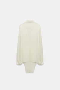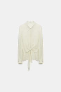 The blouse is made from double silk georgette and ties at the front. The blouse has causal volume in the body and loose long sleeves with fitted button cuffs. Material & Care - 100 % Viscose - Tie blouse in silk double georgette - Classic collar - Hidden button placket - Handwaschprogramm / Maschinenwasche - Mit ahnlichen Farben waschen - Contains non-textile parts of animal origin Size & Fit - Casual volume