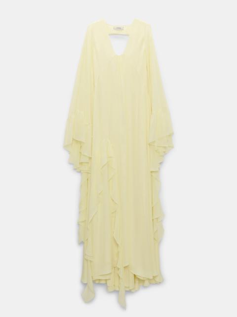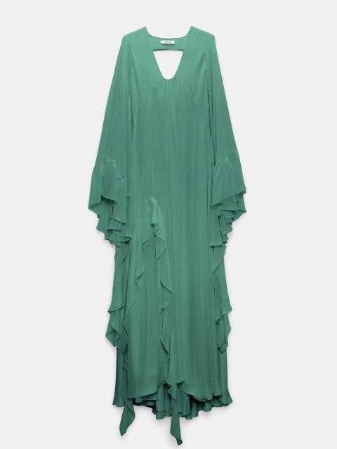 Unforgettable festival memories start here: The ruffle maxi dress is made from double- and single silk georgette and comes with a matching scarf. The dress has a low cut back and dramatic caftan sleeves with soft ruffles at the cuffs. Material & Care - 100 % Silk - Festival maxi dress in silk double- and single georgette - Low cut back - Dramatic caftan sleeves with ruffles - Separate ruffle scarf - Handwaschprogramm / Maschinenwasche - Mit ahnlichen Farben waschen - Remove all detachable parts before cleaning Size & Fit - Our model is 178 cm tall and wears a size S - Fitted shoulders - XL volume at the hem