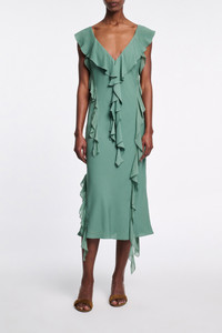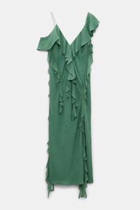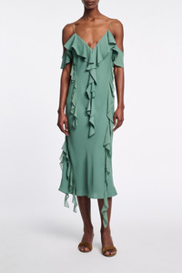 The ruffle dress is made from double- and single silk georgette and has double straps. The dress is fitted and has a soft bias drape. Material & Care - 100 % Silk - Silk double- and single georgette dress with ruffles - Spaghetti- and ruffle straps - Bias cut - Lined - Hand wash program / Machine wash - Wash with similar colors Size & Fit - Our model is 179 cm tall and wears a size S - Fitted