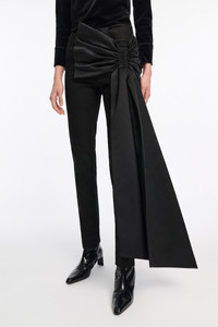 Your moment to shine: A directional take on the iconic denim favorite, the all black skinny jeans feature a dramatic satin bow, which drapes loosely over one leg. Material & Care - 94 % Cotton, 5 % Polyester, 1 % Elastane - Skinny jeans with satin bow - In-seam side zip - Hand wash cold / Machine wash old - Wash with similar colors Size & Fit - Our model is 179cm tall and wears a size 2 - Form-fitting