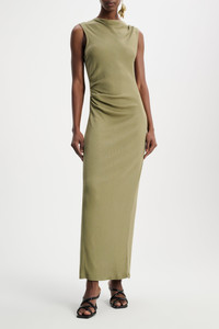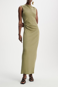 The ribbed cotton jersey tube dress is sleeveless and has soft gathering on the shoulders, which creates a draped neckline. The fitted style has an asymmetrical drape at the hip and a slit at the nape. Material & Care - 100 % Cotton - Ribbed cotton jersey tube dress - Sleeveless with gathered shoulders - Draped neckline - Center back seam with slit detail at the nape - Back vent - Double-needle topstitching on the hem - WE CARE - This item is finished according to STANDARD 100 by OEKO-TEX, 22.0.98928 Hohenstein HTTI - Hand wash program / Machine wash cold - Wash with similar colors Size & Fit - Fitted - This item runs small - we recommend choosing one size larger