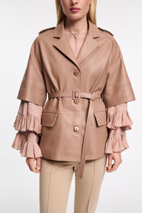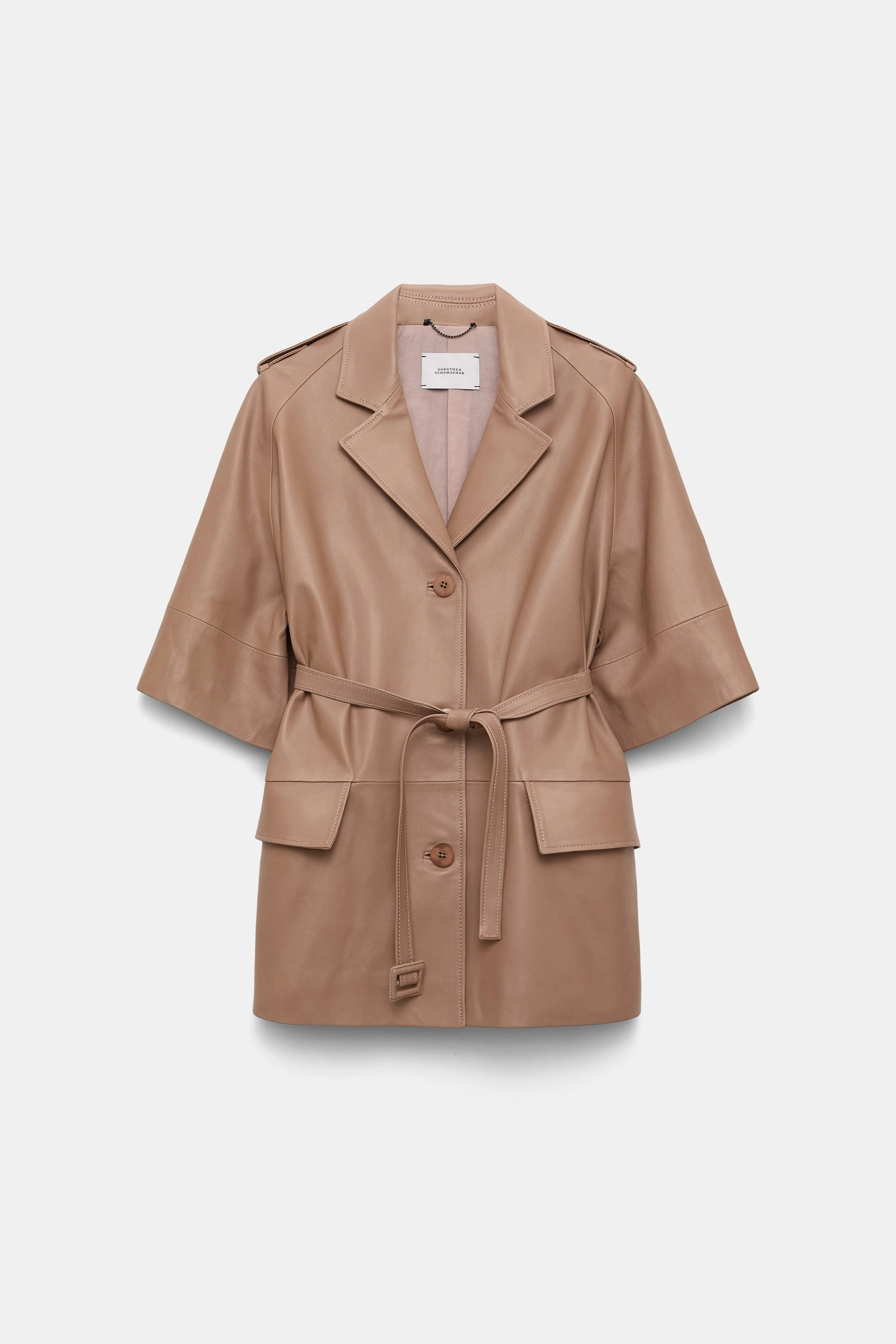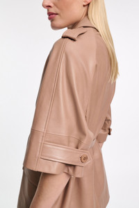 Crafted in the softest lambskin, we've remixed our forever favorite trench coat with 3/4-length sleeves and an A-line silhouette. The coat has classic trench details and comes with a matching belt. Material & Care - 100 % Leather (lamb) - Lambskin trench coat - Notched collar - 3/4-length raglan sleeves with buttoned tab cuffs - Flap pockets - Epaulettes - Matching belted sash - Back vent - No dry cleaning - Do not wash - Colour changes in product may result from strong light irradiation - This garment may transfer onto light coloured materials Size & Fit - Cropped sleeves - A-line