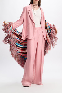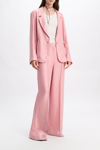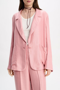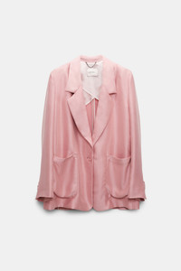 When you've mastered business to brunch & everything in between: The slouchy satin blazer has a dropped notched lapel collar and front patch pockets. The oversized style closes with a single button and can be worn as a suit with the matching pants. Material & Care - 100 % Lyocell - Slouchy satin blazer - Notched lapel - Patch pockets - Buttoned slit cuffs - Partially lined - WE CARE - Fabric supplier produces according to 4sustainability - WE CARE - The fabric is made from TENCEL™, which is a kind of biodegradable Lyocell. These fibers are sourced from sustainably grown wood in a closed-loop system. - Dry cleaning only - No optical brighteners - Do not expose to extreme light - Shield from sharp items Size & Fit - Our model is 180 cm tall and wears a size S - Oversized - Cropped, boxy drape