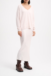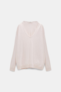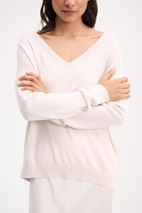 A luxurious choice in pure cashmere, the sweater has a wide V-neckline which can be draped effortlessly off the shoulder. Material & Care - 100 % Cashmere - V-neck sweater in cashmere - Wide neckline with thin, double-layer rib trim - Pure cashmere - Fine gauge - WE CARE - This item is finished according to STANDARD 100 by OEKO-TEX, 22.0.98928 Hohenstein HTTI - Hand wash programm cold / Machinewash - Wash with similar colours Size & Fit - Our model is 177cm tall and wears a size S - Relaxed body - Fitted sleeves