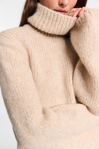 Knit from an alpaca-blend, the turtleneck pullover is softer than soft. The relaxed style has ribbed detailing and wide long sleeves. Material & Care - 72 % Baby alpaca, 15 % Polyamide, 13 % Virgin wool (Merino) - Alpaca-blend turtleneck pullover - Ribbed turtleneck and trim - Hand wash cold / Machine wash - Wash with similar colors Size & Fit - Our model is 180 cm tall and wears a size S - Generous fit - Dropped shoulders - Wide sleeves