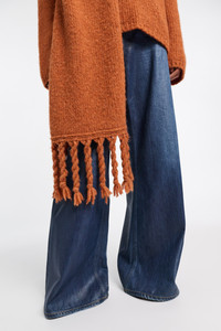 Knit from an alpaca-blend, the scarf is softer than soft. The wide scarf has twisted fringe. Material & Care - 72 % Baby alpaca, 15 % Polyamide, 13 % Virgin wool (Merino) - Alpaca-blend scarf with twisted fringe - Hand wash cold / Machine wash - Wash with similar colors Size & Fit - Wide, long scarf